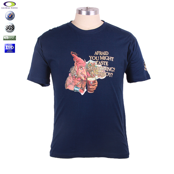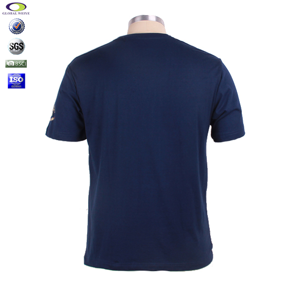男士广告宣传衫藏蓝色烫画圆领短袖T恤衫订制工厂 |