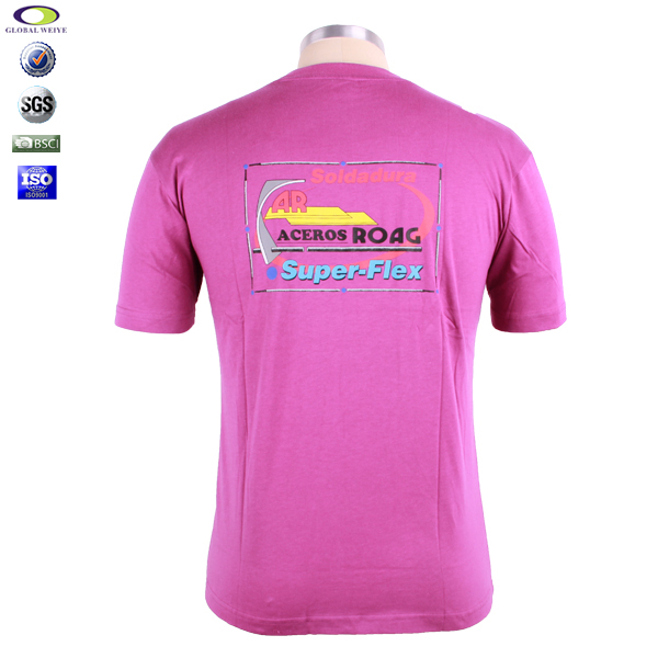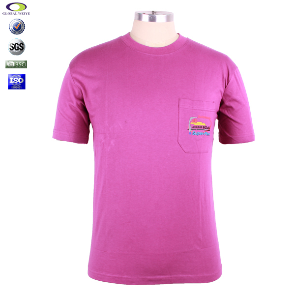 男士玫红色口袋宣传衫印花圆领短袖团队工作服 |