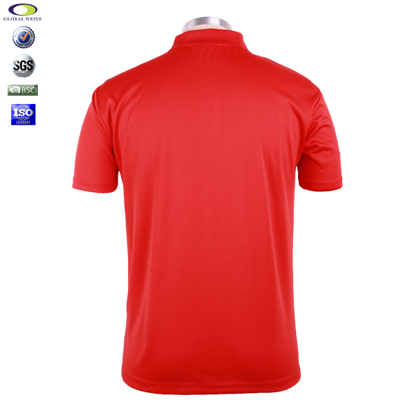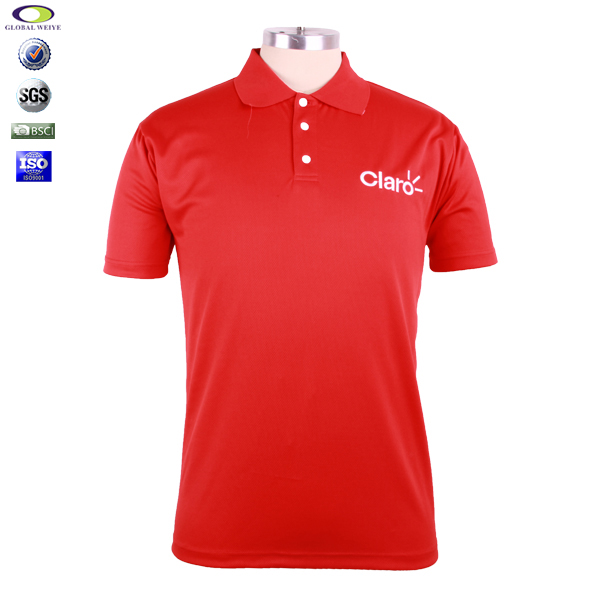 男士全涤红色刺绣POLO衫翻领短袖T恤衫工作服,采用100%涤纶网眼面料,左胸及袖口精致刺绣工艺,速干面料,舒适耐穿,性价比经典短袖翻领款式,专业纸样 标准裁剪。