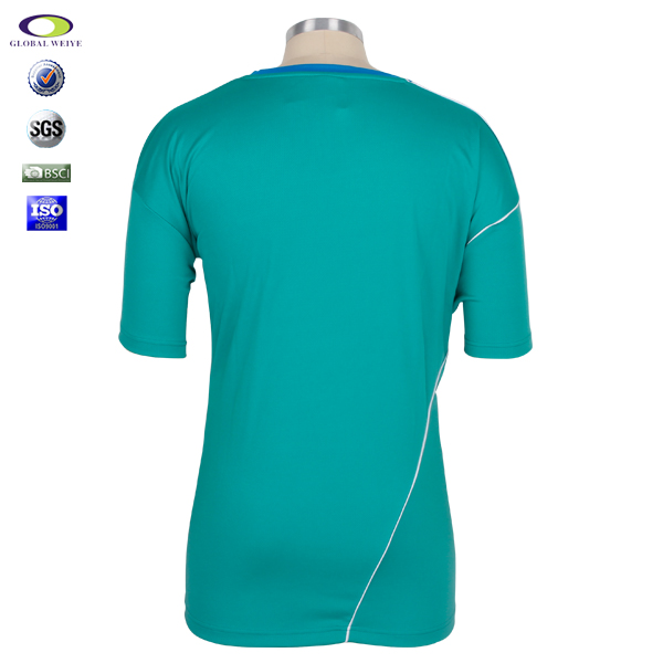 定制男士蓝色领绿色空白T恤衫全涤圆领短袖定制工厂 |