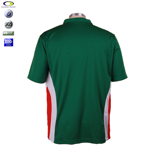男士绿色全涤立领印花短袖T恤衫,采用全涤速干面料,舒适耐穿,高性价比,前幅高品质环保丝网印logo,立领,下摆撞色设计突显时尚魅力,常适用于运动时尚休闲类场合 专业纸样 标准裁剪.