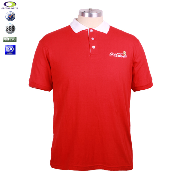 定做男士红色印花白领翻领短袖广告宣传T恤衫定制 |