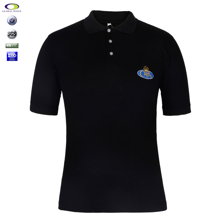 100%全棉黑色商务polo衫男装定制小绣章logo |