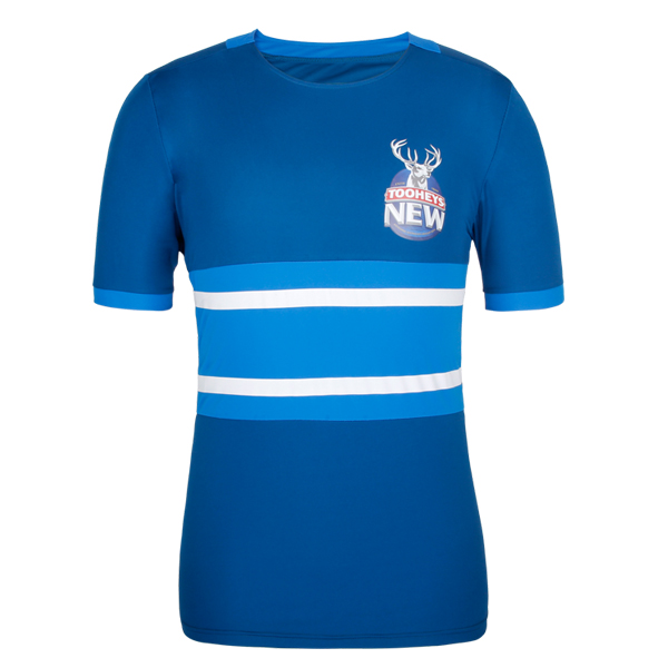 男士蓝色全涤圆领麋鹿印花短袖T恤衫广告衫,采用全涤速干面料,舒适耐穿,高性价比,高品质环保丝网印logo 专业纸样 标准裁剪,经典短袖时尚圆领款式。
