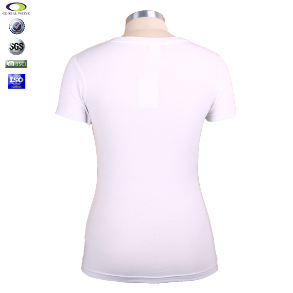 定制女士白色弹性修身印花圆领短袖T恤衫 |
