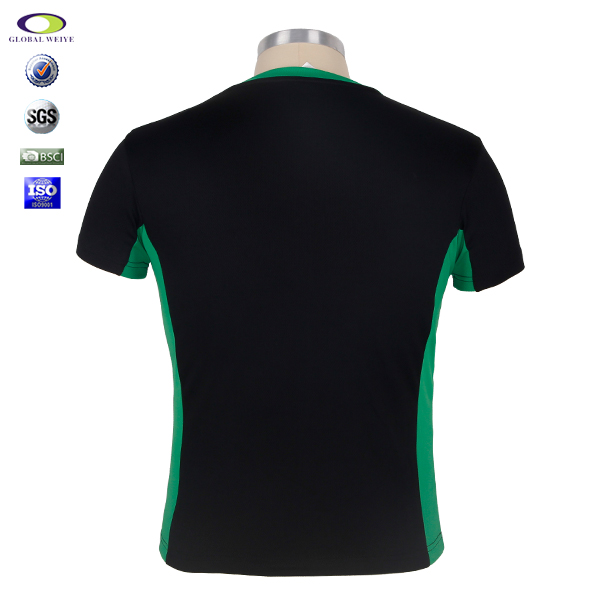 女士V领黑色空白异色领全涤网眼短袖T恤衫定制厂家 |