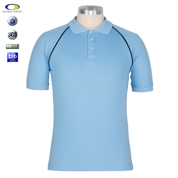 男士全涤淡蓝色空白POLO衫翻领短袖T恤衫定制 |
