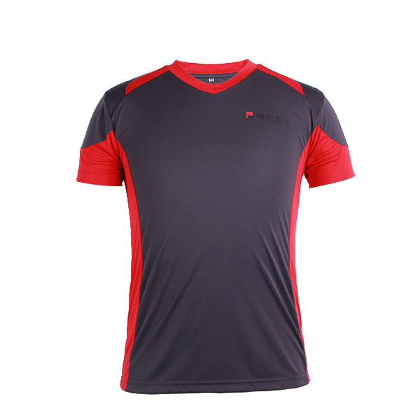 灰色全涤V领插肩印花T恤男短袖T恤衫运动服,采用全涤速干面料,舒适耐穿,高性价比,环保丝网印logo 专业纸样 标准裁剪,经典短袖时尚V领款式。
