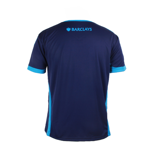 深蓝色全涤V领异色领印花T恤男短袖T恤衫运动服,采用全涤速干面料,舒适耐穿,高性价比撞色设计,突显时尚魅力,常适用于运动时尚休闲类场合 环保丝网印logo 专业纸样 标准裁剪,经典短袖时尚V领款式。