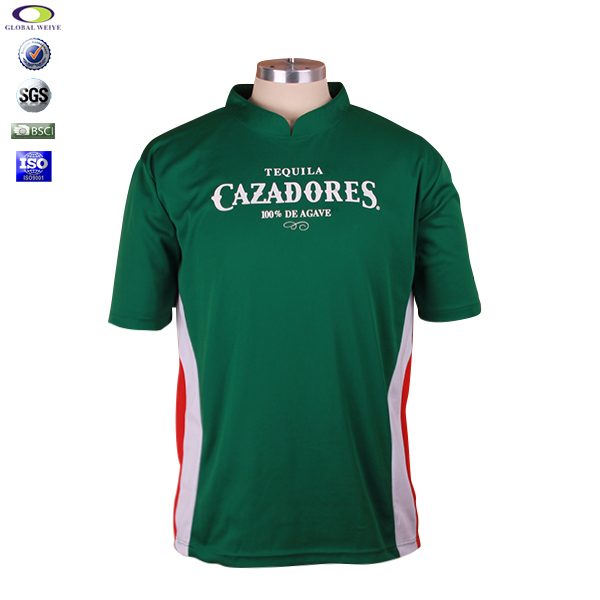 定制男士绿色全涤立领印花短袖T恤衫定制印logo |